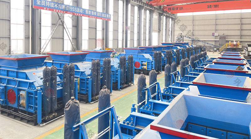 2、2PGY800×600,2PGY800x800,2PGY800×1000 ,2PGY1000×800,2PGY1000×1000,時產30-100噸,屬于中型對輥破碎機。
